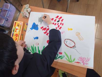 「スイミー」を描いている子が多かったですが、みんな思い思いのお話を、とても上手に表しています。