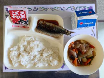 今日は「節分」の行事献立です。いわしも大豆もしっかりいただきましょう!