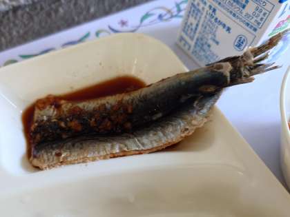 献立は、いわしのしょうがじょうゆかけ、含め煮、いり大豆です。