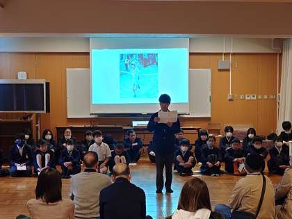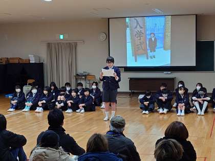 子どもたち一人ひとりが、感謝を伝えたい人に手紙を書き、幼い頃の写真とともにそれを読み上げました。やさしい気持ちが伝わったと思います。