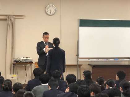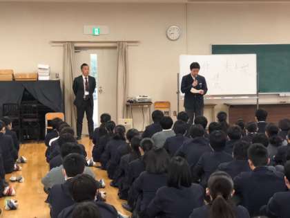今朝、交流スペースにて中学校集会を行いました。「いのちの作文」の表彰に続き、副校長先生より、今年度やり残したことについてのお話がありました。