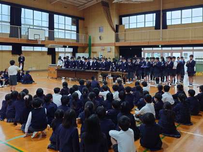 1〜5年の各学年から、6年生に感謝の呼びかけとともに、歌や演奏の贈りものです。6年生もやさしい気持ちで受け取ってくれていました。