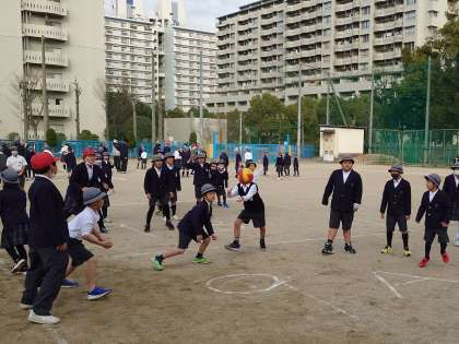 たてわり班で仲良くゲームをしています。高学年が低学年をやさしくサポートしてくれました。