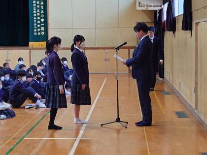 まず、小学校・中学校それぞれに修了証が授与されました。