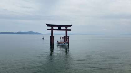 近くにある日吉神社の鳥居をカッターでくぐって、青少年の家へ向かいます!