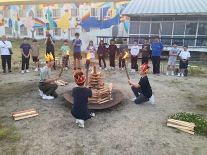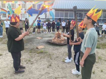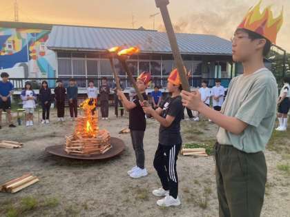火の神が登場し、友情、やさしさ、成長の火を授かり、着火しました。