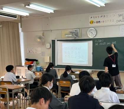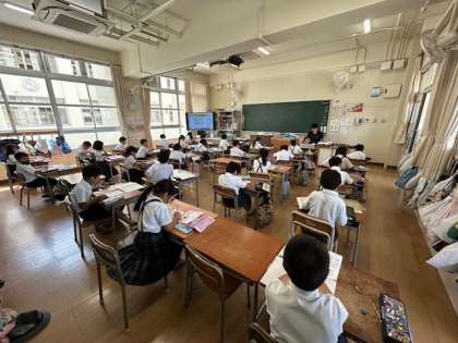 2時間目の授業の様子です。2年生では算数、100より大きい数の表し方について学習しています。8年生の理科ではホットケーキが膨らむ理由について考えています。