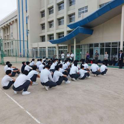 9年生 岐阜・郡上方面 修学旅行 笑顔で出発です。行ってきます!