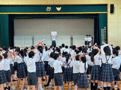今朝の児童集会は〇×クイズでした。「教室の蛍光灯の数は10本である。〇か×か?」普段過ごしている教室でも、言われてみると意外と見ていないものですね。みんなとても楽しそうに取り組んでいました。