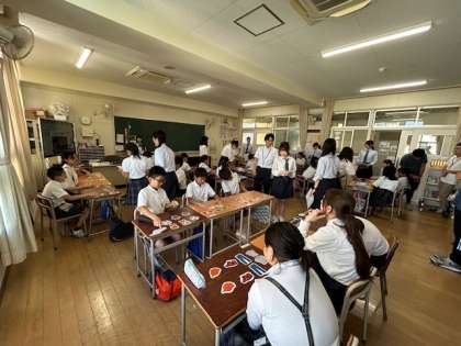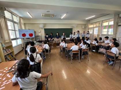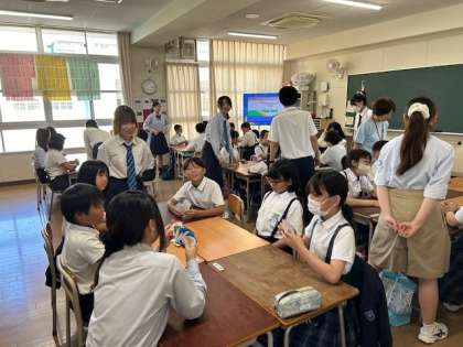 今日の、5時間目、6時間目は水都国際の高校生、中学生に来ていただき、小学校4年生、5年生向けに英語のアクティビティーをしていただきました。それぞれのクラスで2つずつ取り組んでいただき、小学生もノリノリ。楽しみながら英語を学ぶことができた時間でした。水都国際高等学校・中学校の生徒のみなさんおよび先生方、貴重な機会をありがとうございました。