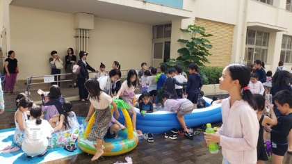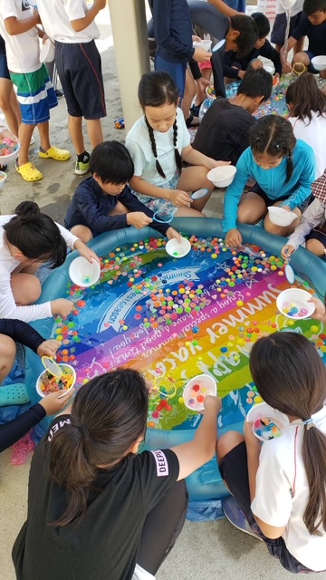 今回は二回目の開催で、前回とは場所も内容も異なる「水遊び」に挑戦。にぎやかな歓声が校舎に響き、とても楽しい時間を過ごすことが出来ました。