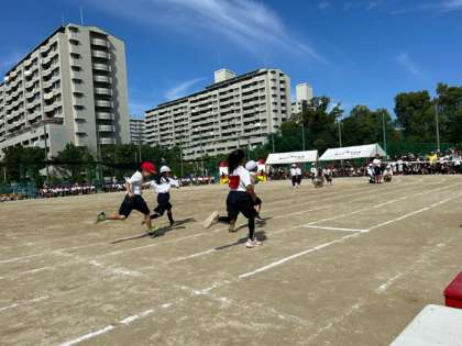 1年生、ゴールに向かって、よーいどん!