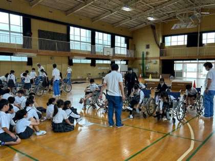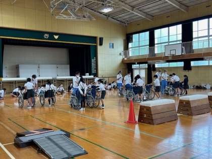 4年生が車いす体験を行っています。ちょっとした段差でも、歩いているときは気にならないのに、車いすだと大変ですよね。一人ひとりが車いすに乗ってみることで、たくさんの気づきのある学習になっています。リハビリテーションセンターのスタッフの皆さん、貴重な機会をありがとうございました。