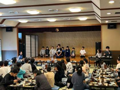 昨日の夕食タイムに続き、またまたレクレーションタイム。今日は謎かけ。たくさんの落語家たちが舞台上に…