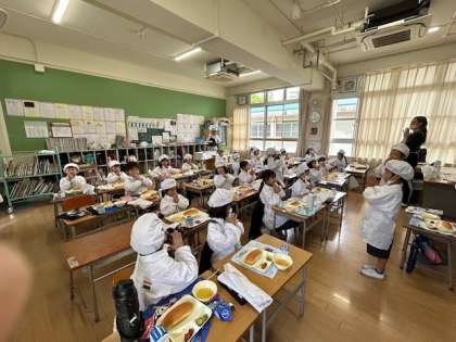 今日は1年1組の様子。手を合わせて「いただきます!」