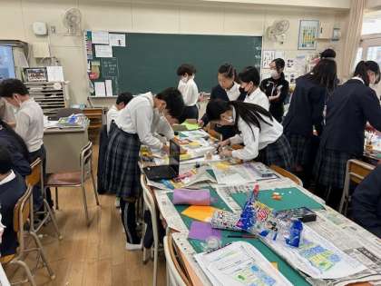 今日の3,4限目(1組)、5,6限目(2組)の6年生の授業は「理想のまちをつくろう!」に取り組みました。2036年、今から12年後の南港はどうなってるでしょうか?それぞれの理想のまちについて、班ごとに模型を作成しています。