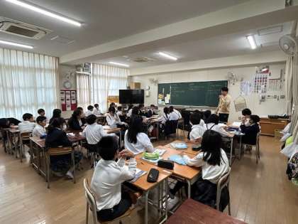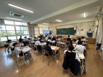3限目の授業の様子です。4年生では算数、「計算のきまり」について、5年生では理科、「扇状地と三角州の違いについて」7年生では美術、「色について」それぞれ学習しています。