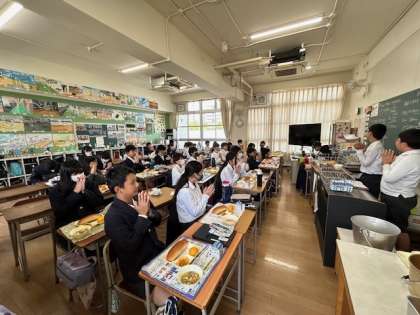 今日は6年2組のようすです。心を込めて「いただきます!」