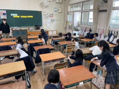 身の回りを衛生的に保つために、低学年でもできることということで、除菌シートを使って机ふきにチャレンジしました。