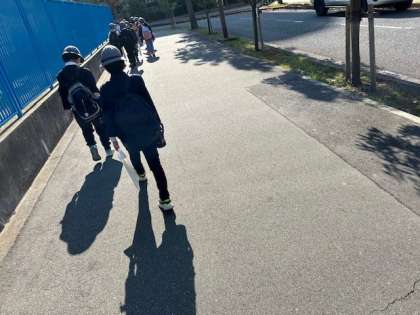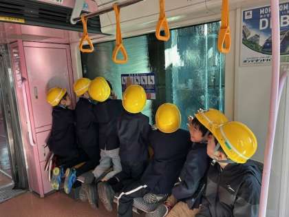 途中、ニュートラムの洗車の様子も車内から見せてもらい、テンションあがりまくりでした。帰りはなんと徒歩で学校まで。みんなよく頑張りました。