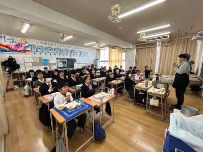 今日は7年1組の様子。いつもより早く配膳できたかな?元気よく「いただきます!」