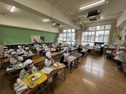 今日は2年1組の様子です。元気よく「いただきます!」