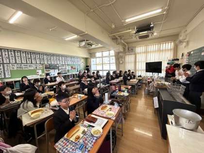 今日は6年2組の様子です。手を合わせて「いただきます!」