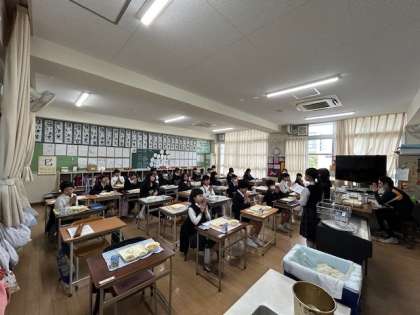 今日は5年1組の様子です。手を合わせて「いただきます!」