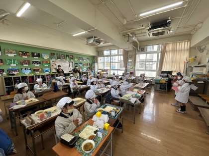 今日は2年1組の様子。手を合わせて「いただきます!」