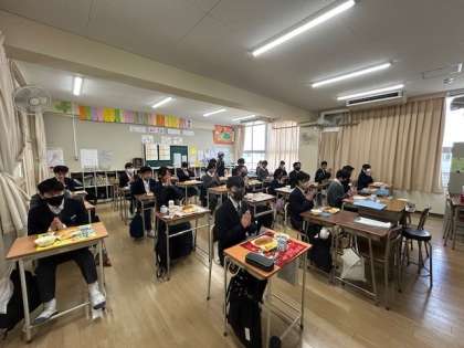 今日は9年1組の様子。手を合わせて「いただきます!」