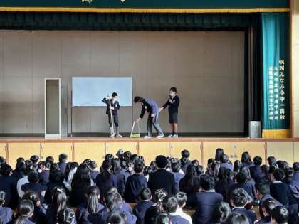今朝の児童集会は美化委員会からの掃除にまつわるクイズでした。どの問題もよく考えられていました。改めて清掃道具の使い方を見直すいい機会になりました。美化委員会のみなさんありがとうございました。