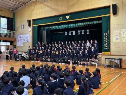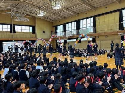 本日2限目、体育館にて6年生に向けて、児童会が中心となり卒業を祝う会を行いました。その様子を少しだけですが、アップさせていただきます。