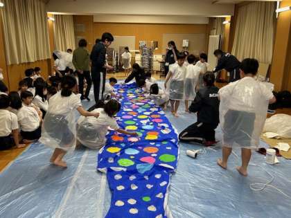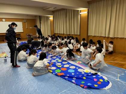 先日、南港にある企業の「アチハ」さんから、アチハさんと本校の児童生徒と一緒にこいのぼりづくりをしませんか?とのお話をいただきました。子どもたちが色を塗り、夢を描いたこいのぼりが5月に南港の空をおよぐ。素敵なご提案です。是非ということで、今年度より一緒に取り組みをさせていただいています。