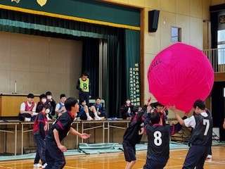 本日、8年生では【キンボール】を使って球技大会を行いました。