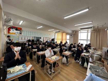 今日は8年1組の様子です。手を合わせて「いただきます!」