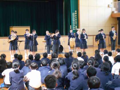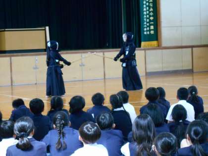 5限に5〜9年生が体育館に集まり、部活動紹介が行われました。