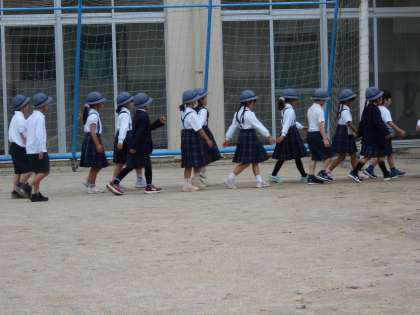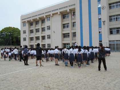 あいさつうんどうがはじまります。げんきよくあいさつしましょう。