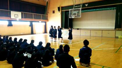 今年より、日頃の同級生たちの頑張りを見せ合おうと、全校生徒の前で行いました。