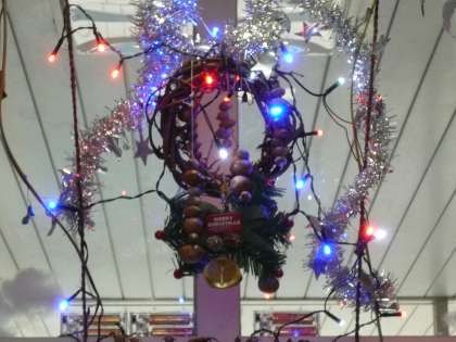 玄関の飾りがクリスマスの彩り(管理作業員さん作成)に変わりました。