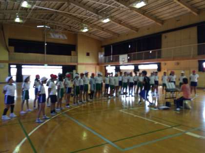 今日は、南港南中学校で授業体験と小学校交流ドッチボール大会を行いました。