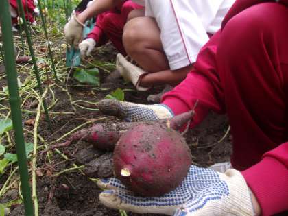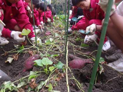 今日の3時間目を授業変更してさつまいもの収穫を行いました。