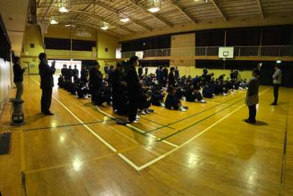 終業式後の焼き芋大会で美味しそうに焼き芋をほおばってました。