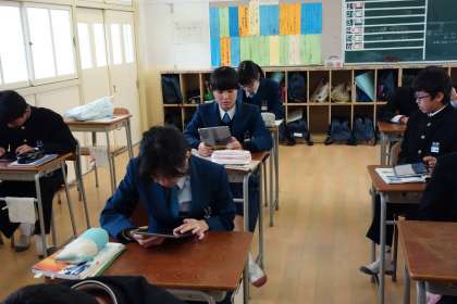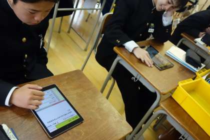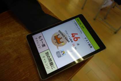 このクラスは1限にタブレットPCを使ってましたが、操作に戸惑うことなく上手に使っていました。