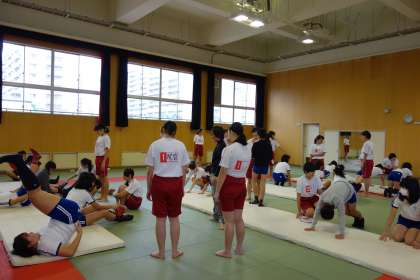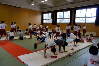 今日は小中連携体育の授業で渚小の6年生が来校しました。