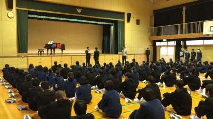 この日の全校集会は、校長先生のお話、英検の表彰と卒業式歌の練習でした。