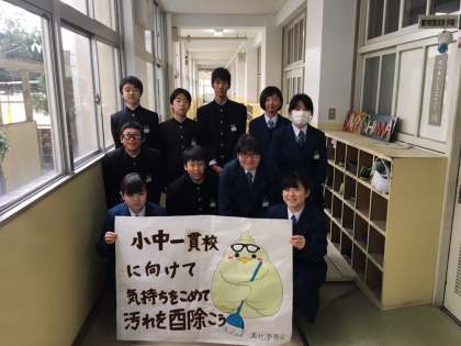 小中一貫校に向けて、気持ちを込めて、校舎の汚れを”酉”除こう!!