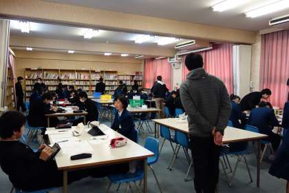 2年生は修学旅行で行く長野県について、名産物や生活習慣を本やタブレットPCを使って調べました。
