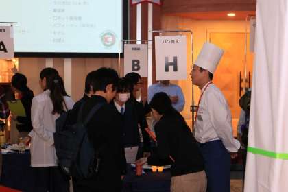 右の写真には、パン職人の方との交流をしている様子がうつされています。普段では聞くことの出来ない色々なことを教えていただきました。