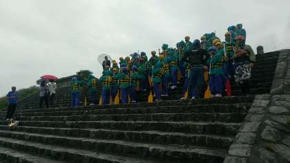 水着に着替え、上着を着、ヘルメットを装着して準備完了です。