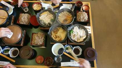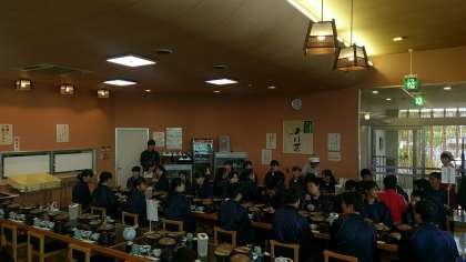 天竜川のラフティングは水が冷たかったので、温かいご飯はとてもうれしいようです。